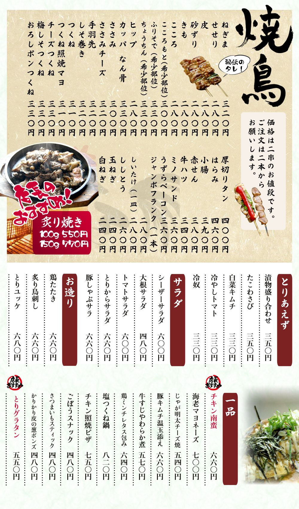 リーズナブルで旨い朝挽き鶏焼き鳥を味わうならしゅらくへ是非お越しください!