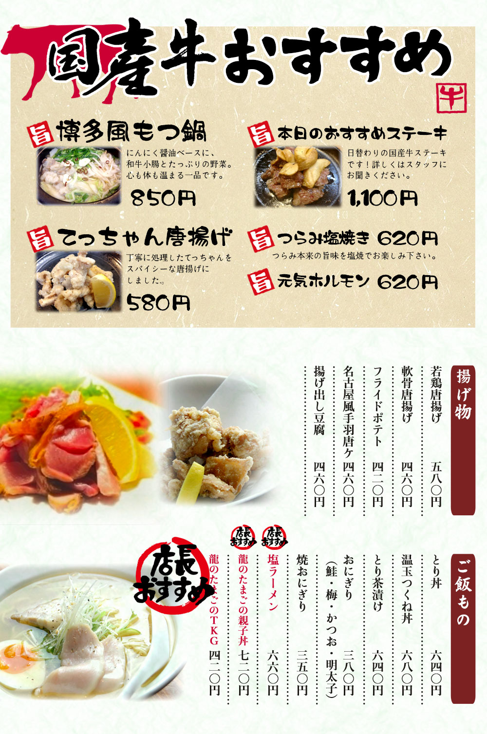 上記のメニューは税別表示となります。